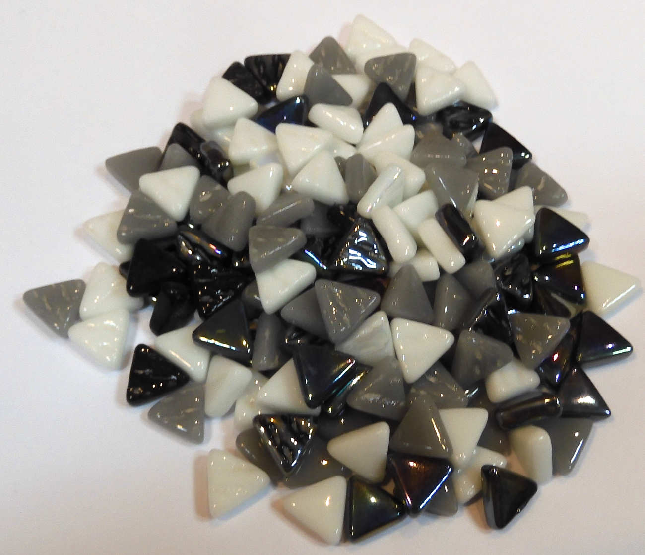 Die Dreiecke bestehen aus recyceltem Glas, sind frostfest und UV-beständig. Die Oberseite ist glatt und glänzend, die Unterseite ist etwas geriffelt.