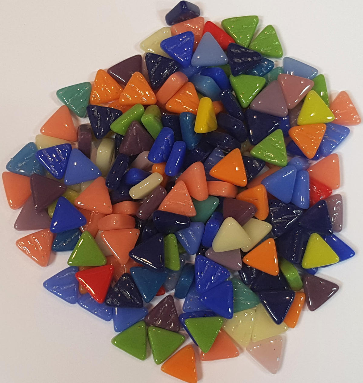 Die Dreiecke bestehen aus recyceltem Glas, sind frostfest und UV-beständig. Die Oberseite ist glatt und glänzend, die Unterseite ist etwas geriffelt.