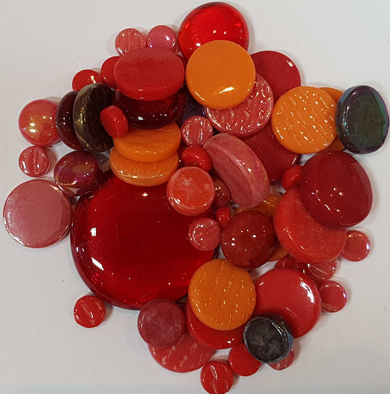 Farbe: bunte Mischung runder Mosaiksteine in roter Farbrichtung