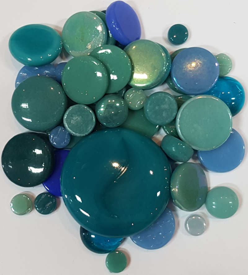 Farbe: bunte Mischung runder Mosaiksteine in türkiser Farbrichtung