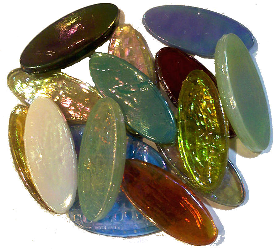 Eine ovale Form mit wunderbar irisierender, transparenter oder auch opaker, nicht durschscheinender Oberfläche gibt diesem Glasmosaik ein exklusives Design für das moderne und zeitlose Mosaik-Sortiment. Für extravagante Kreationen im eigenen anspruchsvollen Design.