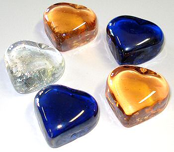 Nuggets finden ihre Hauptverwendung im dekorativen Bereich, können aber auch in Leuchten und Geschenkartikeln verarbeitet werden. Eingebettet in ein Mosaik, geben Sie diesem eine wunderschöne, erhabene Note. Die Herzen bestehen aus eingefärbtem Glas und sind leicht transparent.