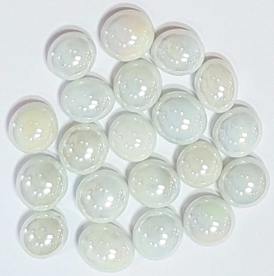 - opak (nicht durchscheinend), irisierend, weiß