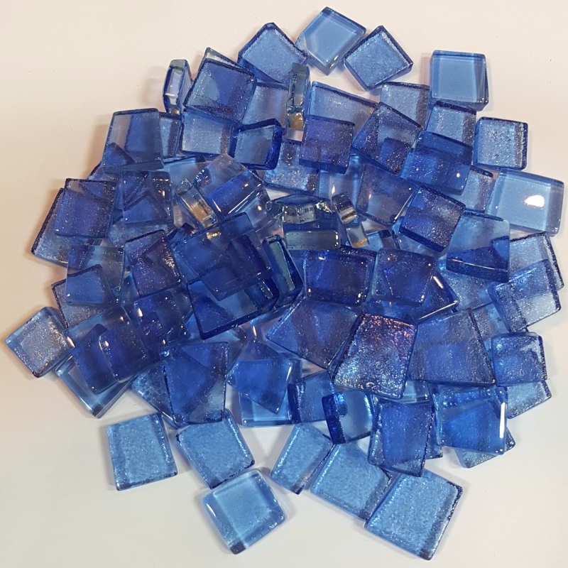 transparente Glasmosaiksteine in leuchtendem Blau