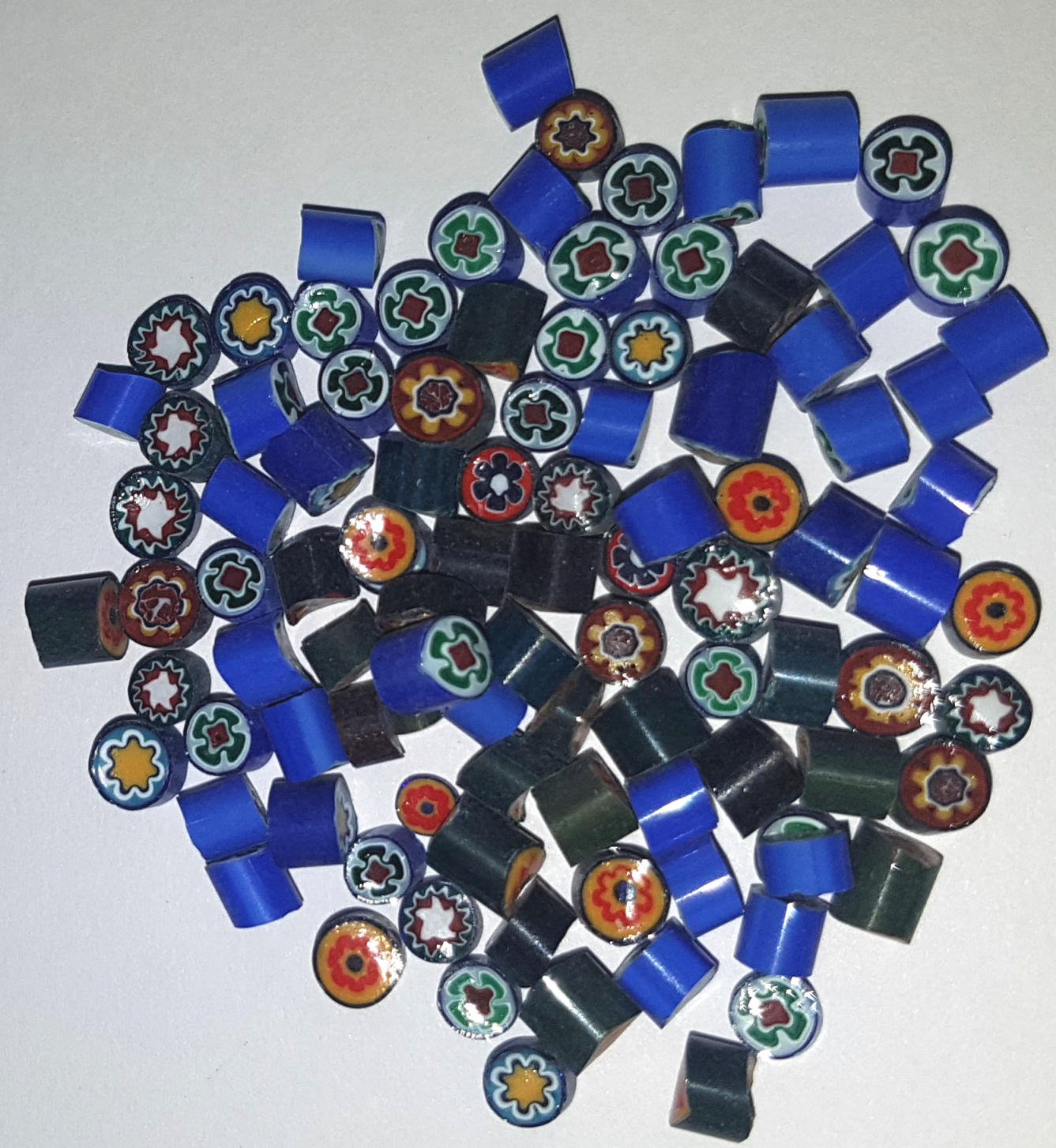 Das exquisite Design jedes einzelnen Glasstückes von Millefiori macht diese Kollektion zu einer angesagten und einzigartigen Dekoidee für Ihr Zuhause. Jedes einzelne Glaselement dieser Sammlung verfügt über einen Durchmesser von ca. 4 mm bis ca. 5 mm. Die Höhe der Glaselemente beträgt pro Stück ca. 3 mm bis ca. 5 mm. Die Kollektion besteht aus einer Sammlung rund geformter, mit floralem Muster gestalteter Glasmosaike. Die Mischung der floralen Muster gibt dieser Kollektion einen edlen und ausdrucksstarken Charakter.
