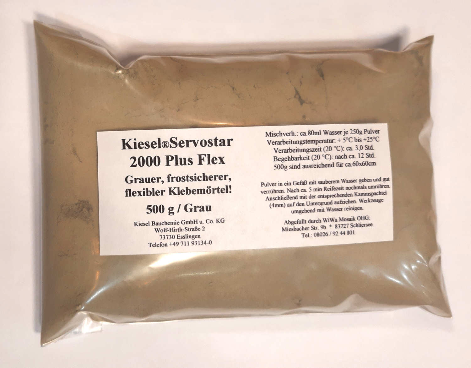Graues Klebepulver zum Anrühren mit Wasser für den Innen- und Außenbereich. Der graue Kleber findet Verwendung, wenn die Mosaike mit grauer oder dunklerer Fugenmasse ausgefugt werden sollen. Dies reduziert die Gefahr einer Farbveränderung im Gegensatz zu unserem weißen Kleber. Ein Beutel (500 g) ist ausreichend für eine Fläche von ca. 40 x 40 cm. Unser Mosaikkleber ist hochflexibel, kunststoffvergütet, frostsicher und natürlich auch für den Außenbereich geeignet.
