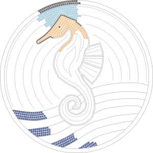 - Sie können unter die Vorlage auch eine Folie und darüber ein Mosaiknetz legen und die Steine dann mit Weißleim auf das Trägernetz kleben. Anschließend wird das Mosaik am endgültigen Montageort (Bodeneinleger, Wandeinleger ...) verlegen.