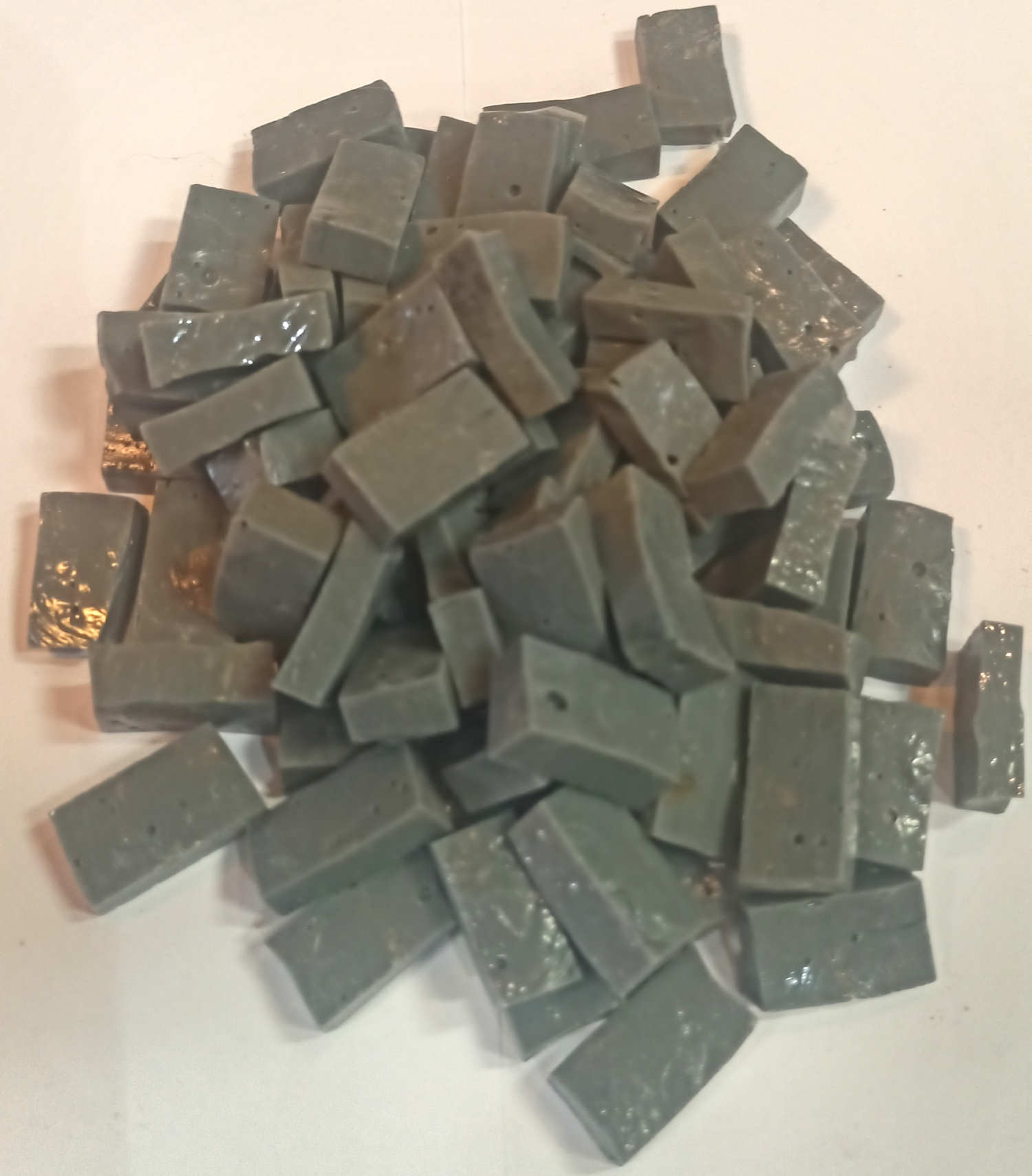 Bei unseren Smalten handelt es sich um das klassisch-byzantinische Mosaikmaterial, deren Schönheit in den Variationen von hunderten von Farbnuancen liegt. Dabei wird die flüssige Glasschmelze eingefärbt und zu Glaskuchen gegossen. Aus diesem werden dann von Hand Streifen geschnitten und zu Smalten gebrochen, wodurch die typische unebene und malerisch lebendige Oberfläche entsteht.