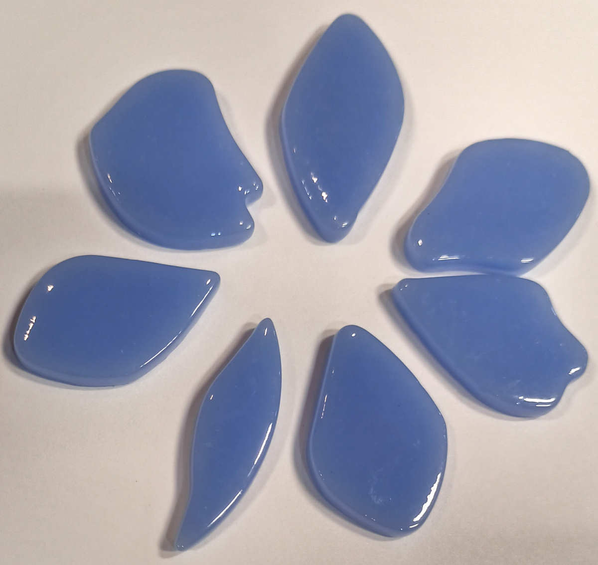 Die Blüten bestehen zu 98% aus Recycling-Glas und haben weiche, abgerundete Kanten. Sie lassen sich wunderbar mit allen 4mm dicken Mosaiksteinchen, wie z.B. unserem Mini-Flip-Keramik kombinieren.