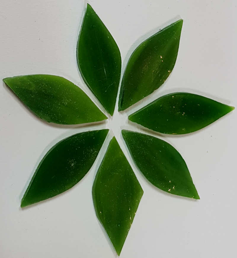 Die Blüten sind teilweise transparent, teilweise mit schöner irisierender Oberfläche und eignen sich auch für hinterleuchtete Mosaike wie z.B. Teelichter, Vasen etc. Das Tiffany-Glas ist beidseitig verwendbar. Die Vorderseite kann sich von der Rückseite farbtechnisch auch unterscheiden, dies liegt in der Natur der Tiffany-Gläser.