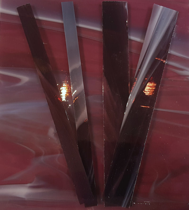 Die Tiffany-Glasstreifen sind in der Breite von 10 mm und 20 mm erhältlich. Die Streifenlänge berträgt 150 mm.