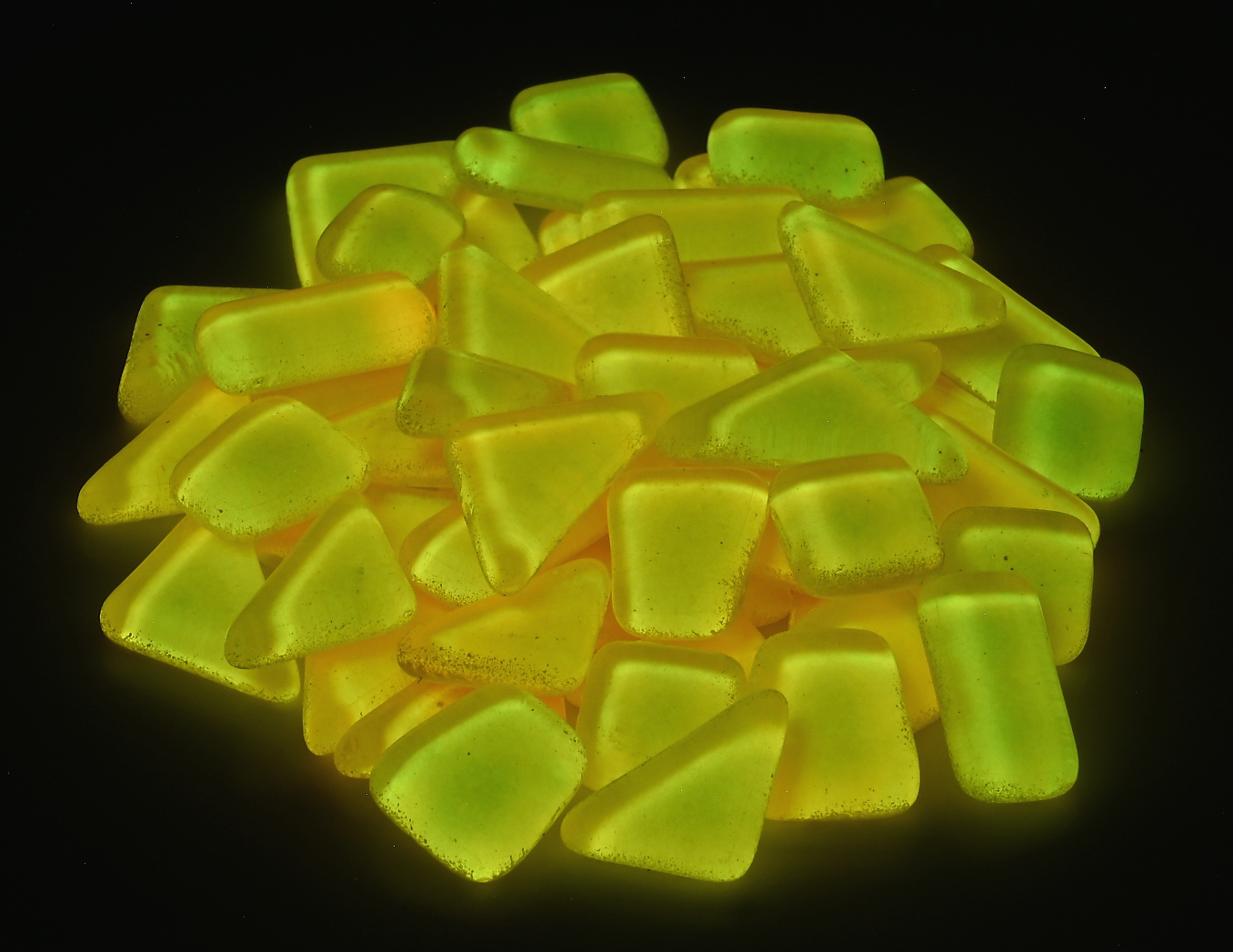 Unser nachtleuchtendes Mosaik besteht aus transparentem, auf der Unterseite eingefärbtem Glas mit weichen, abgerundeten Kanten. Soft Glas wird in der Regel nicht geschnitten und ist besonders bei Arbeiten mit Kindern sehr beliebt. Neben den nachtleuchtenden Farben sind auch nicht leuchtende Einzelfarben sowie verschiedene Mischungen erhältlich. Es stehen auch Soft Glas Steine mit Glitzereffekt zur Verfügung.